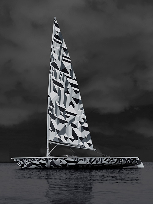 Whoa! Saw this featured in the latest issue of Wallpaper magazine's "Handmade" issue: a beautiful sailboat by Marian Bantjes. It is inspired by "dazzle" naval camouflage used in the World War, which I too am now obsessed with. My love for it is real.